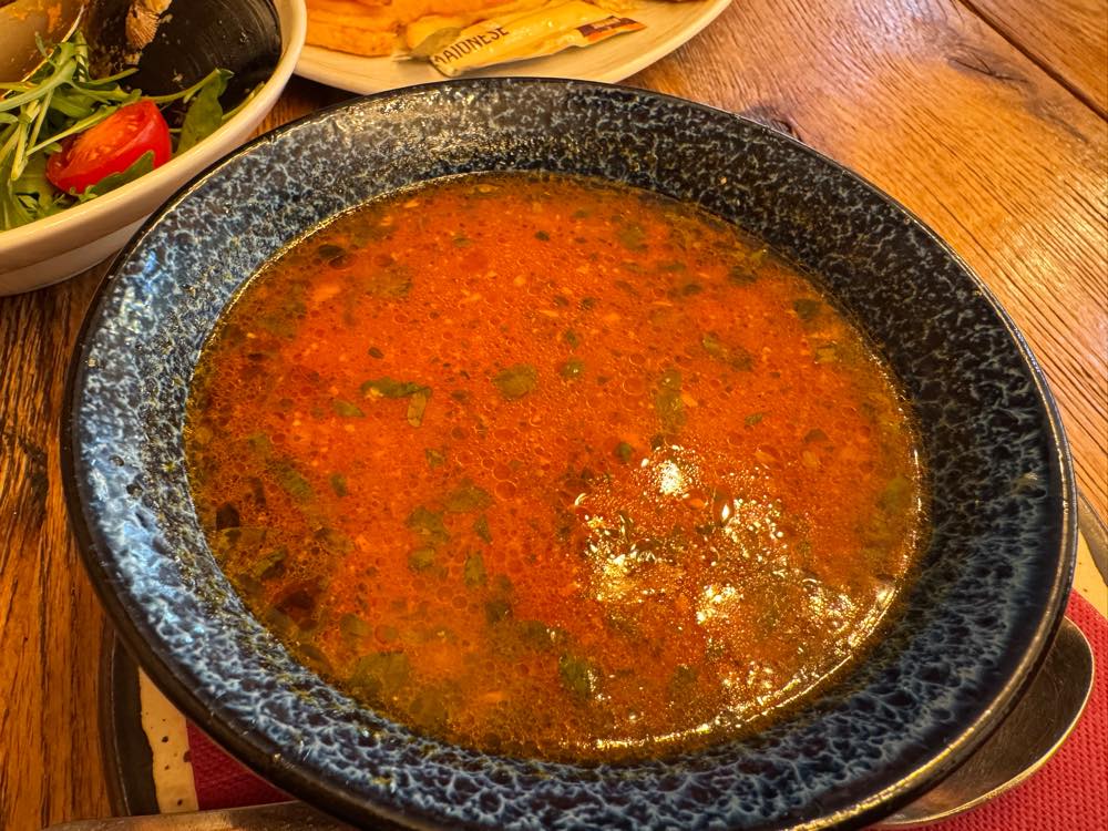 トマト味でニンニクが効いた、思ったのと違うスープが来ました。