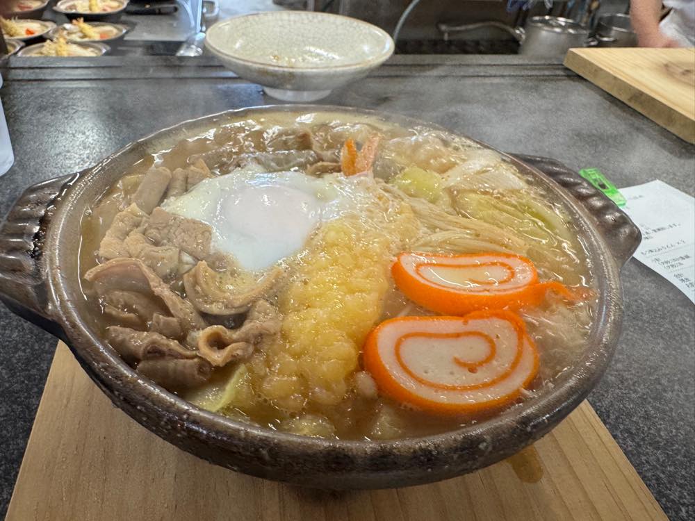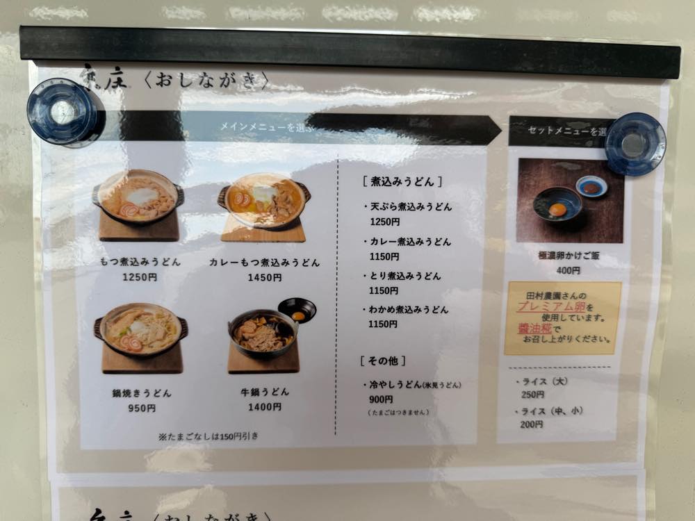 以前は卵なしのもつ煮込みうどんがあったそうですが、価格改定時に、お値段を上げる代わりに、卵付きをデフォにしたそうです。