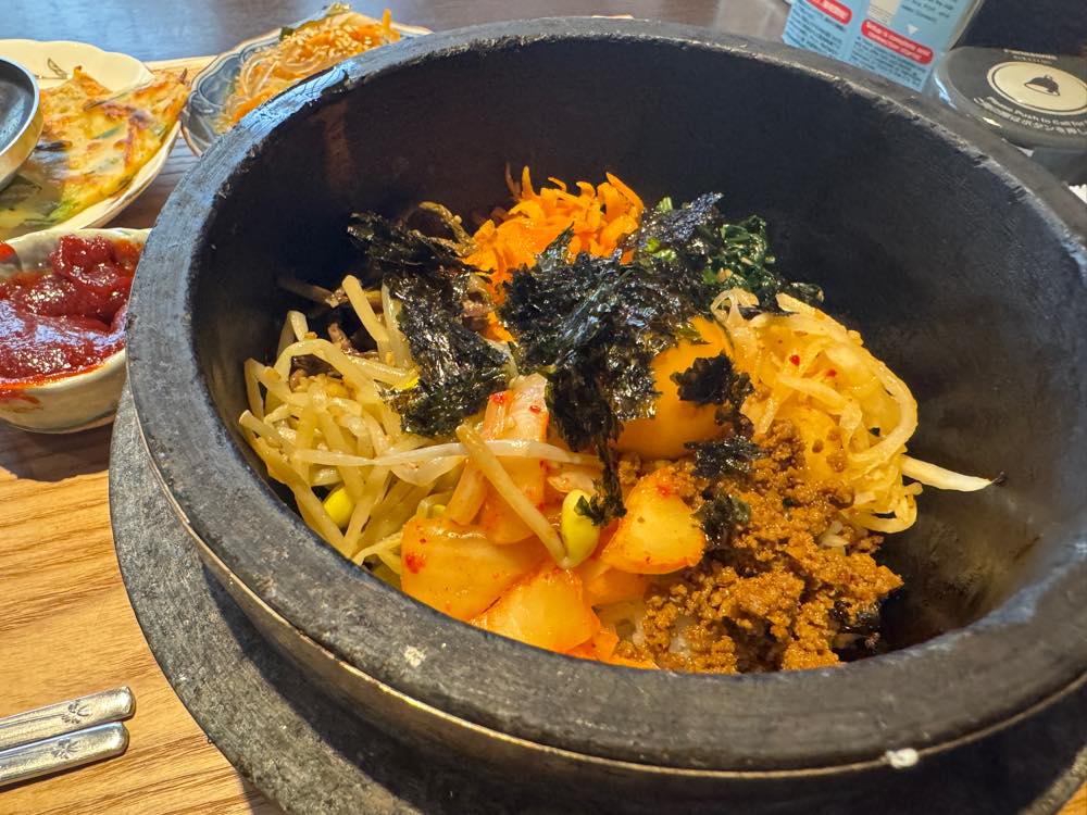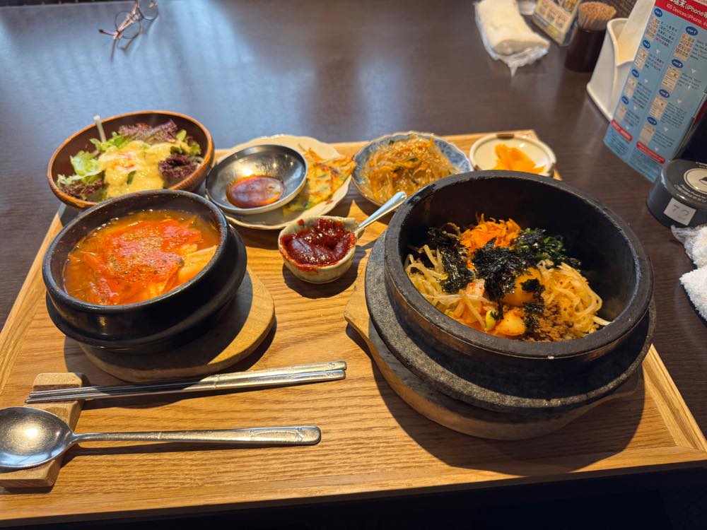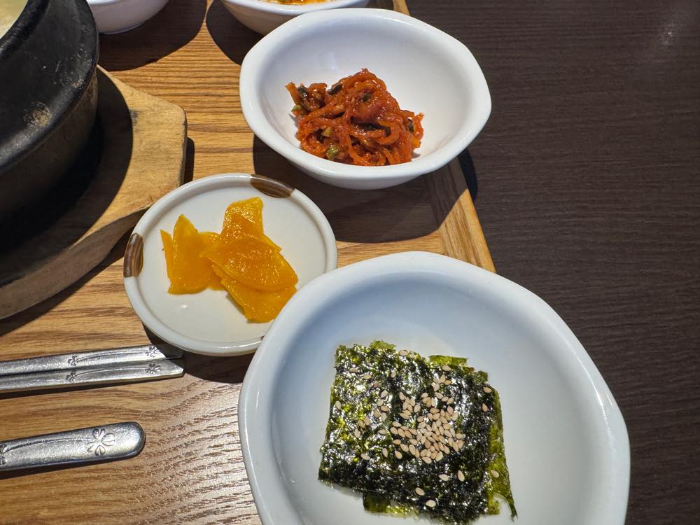 ミニ石焼ビビンバとミニ海鮮チゲが付いています。