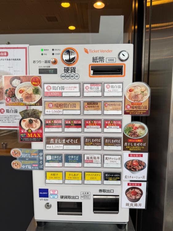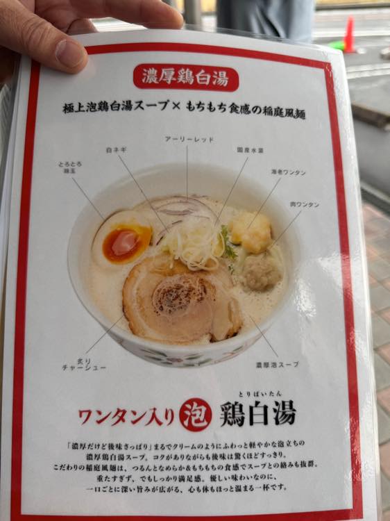 『ワンタン入り泡鶏白湯』ラーメンが一押しっぽいんですが、食券機には単品がなかったような。
