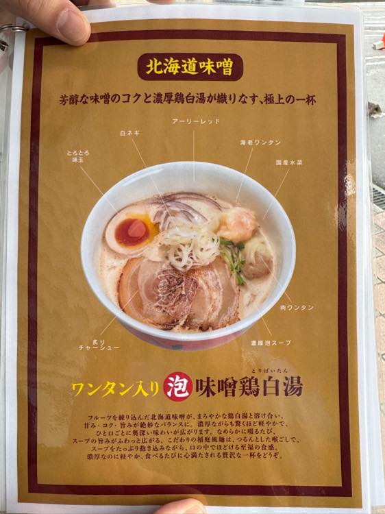 ちなみに夫は『泡味噌鶏白湯』1060円を注文。